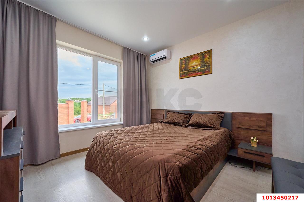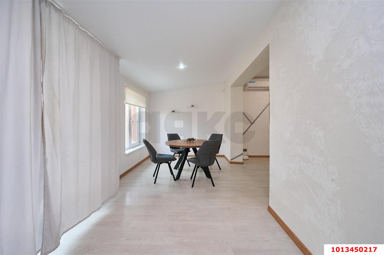 Планировкой предусмотрена совмещенная гостиная и кухня 33 м2, с выходом на заднюю часть дома, две жилые комнаты и санузел. Качественный ремонт из материалов в светлых тонах именитых брендов. Теплый водяной пол по всей площади дома, установлен качественный электрический котел Proterm c большим запасом мощности. Есть кладовая в чердачном помещении с доступом по выдвижной лестнице.